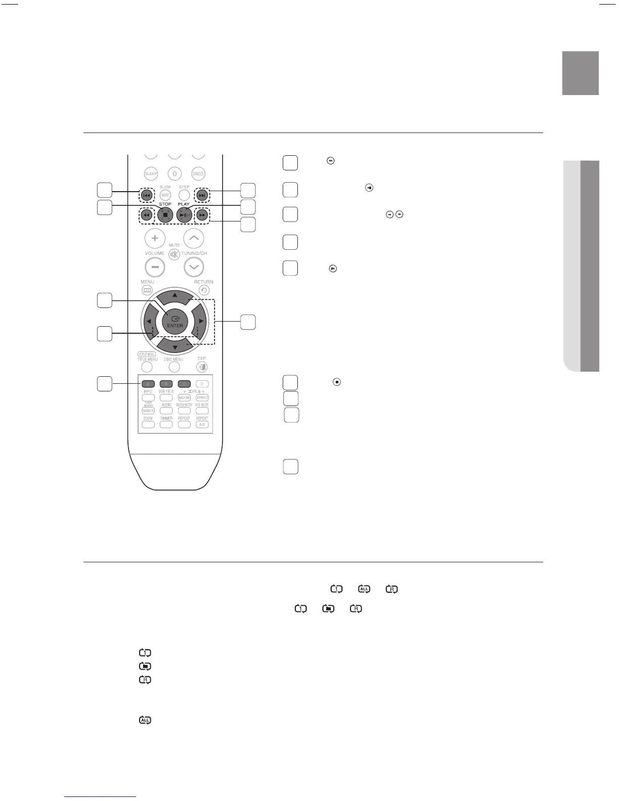 SKIP ( ) button : Returns to the beginning of the current