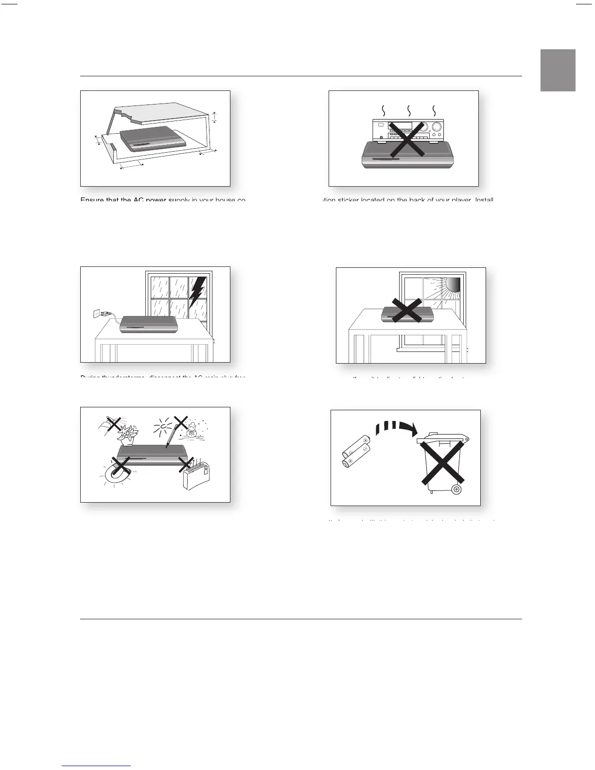 Ensure that the AC power supply in your house complies with the identification sticker located on the back of your player. Install your