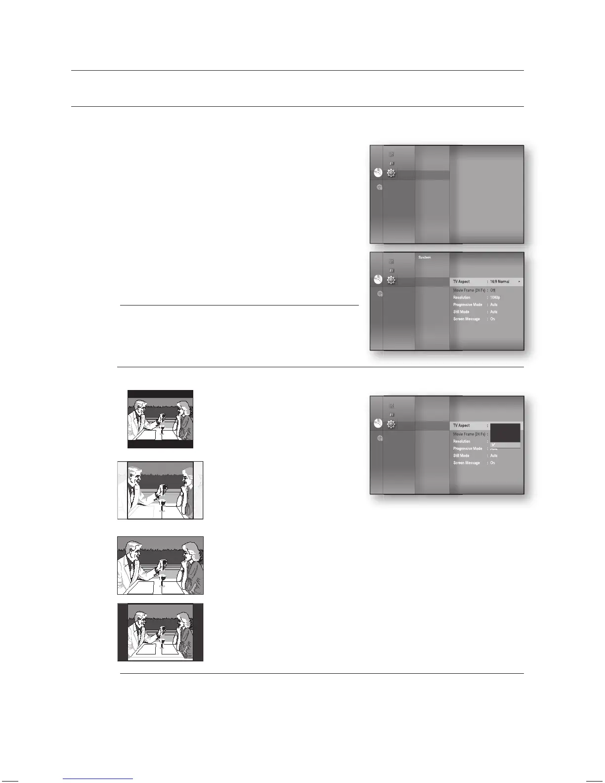 This function allows you to setup the TV screen settings. This function depends on the disc or TV type. It may not
