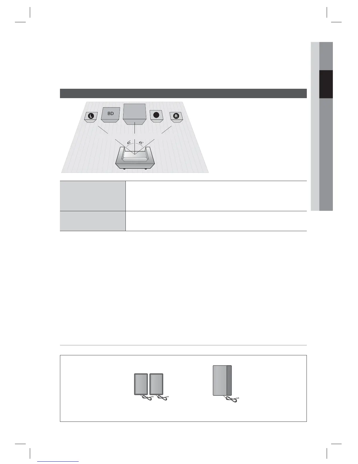 un angle de 45° environ. Placez les enceintes de sorte que les haut-parleurs