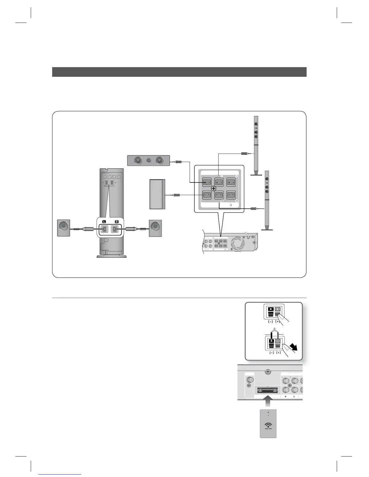 To connect the surround speakers wirelessly, you have to purchase the wireless receiver module and