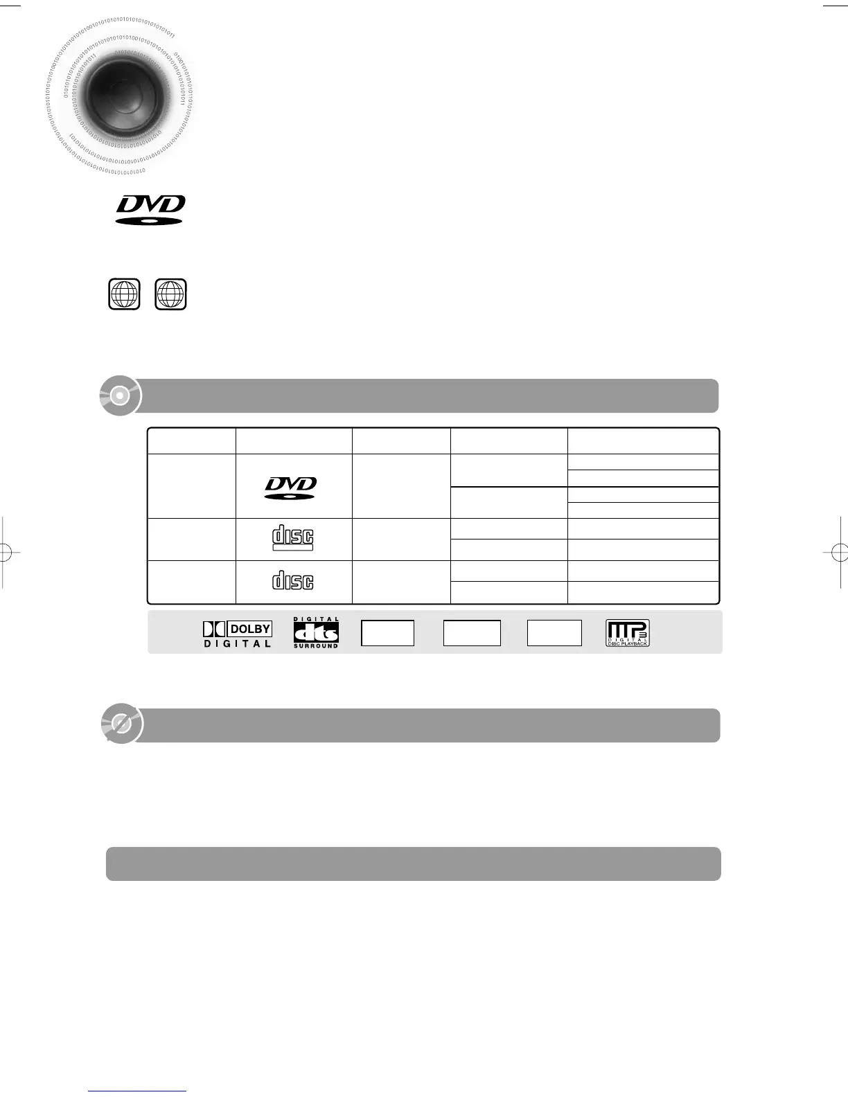 LD, CD-G, CD-I, CD-ROM and DVD-ROM cannot be played on this player.