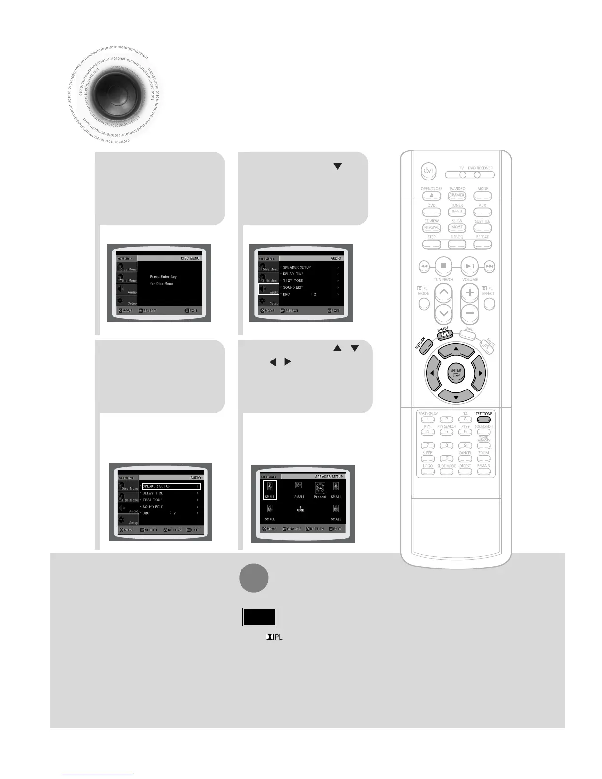 Depending on PRO LOGIC and STEREO, the speaker mode may vary.