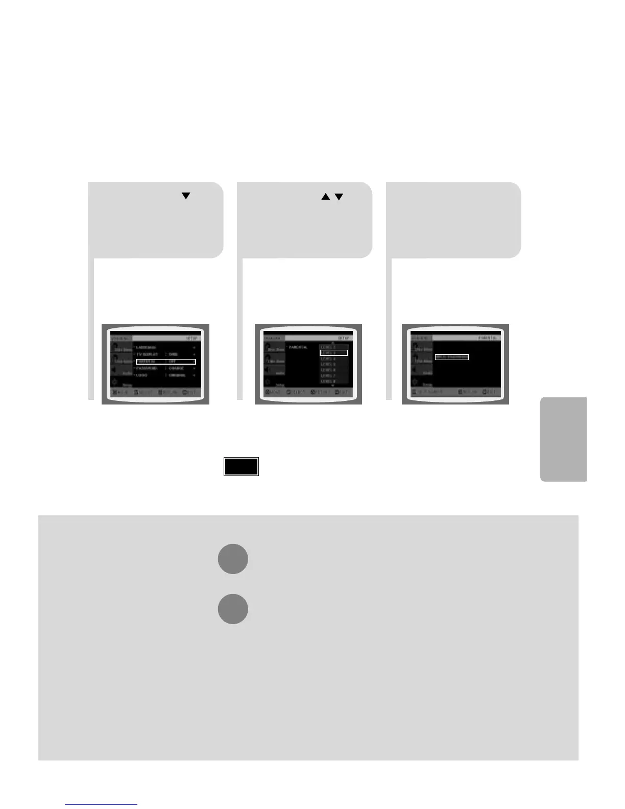 This function works only if a DVD disc contains the rating level information.