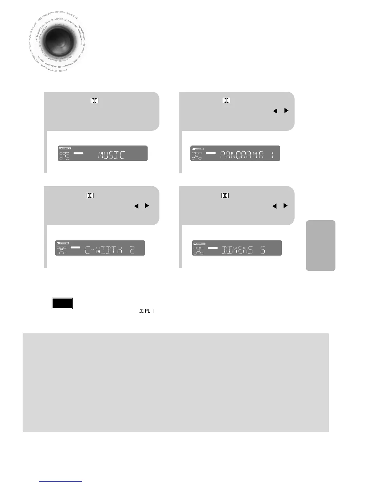 CENTER WIDTH: Sound is output to the center speaker only. The front left and right speakers