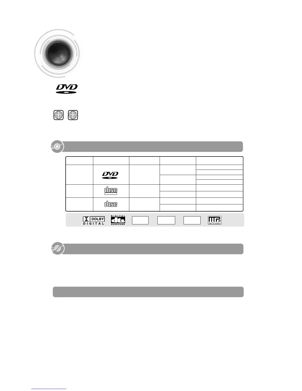 LD, CD-G, CD-I, CD-ROM and DVD-ROM cannot be played on this player.