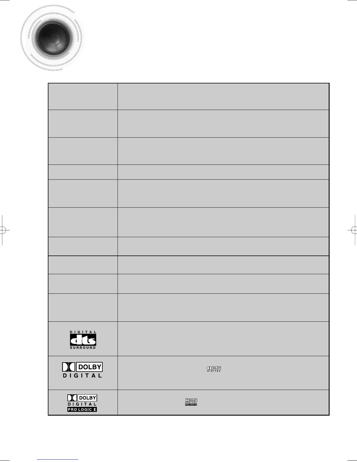 5.1 (or 6) Channel Digital Surround sound reproduced from DVDs and LDs