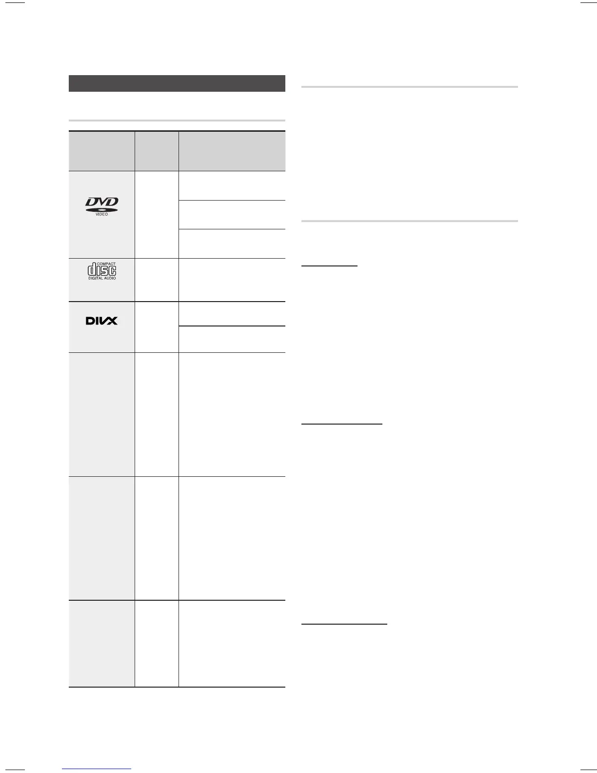 Samsung HT-E355 - Disc Playback Details; Supported and Unsupported Discs; Disc Format Specifics