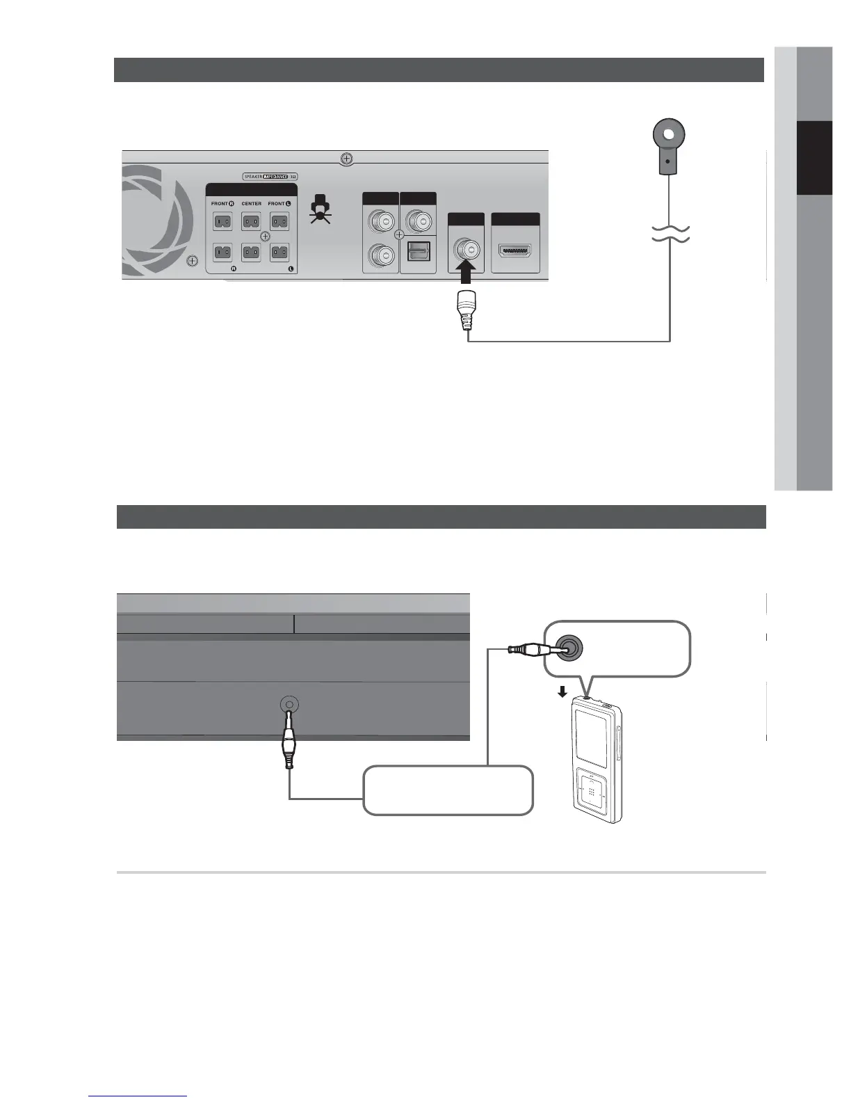 1. Connect AUX IN 1 (Audio) on the front of the product to the Audio Out of the external component/ MP3