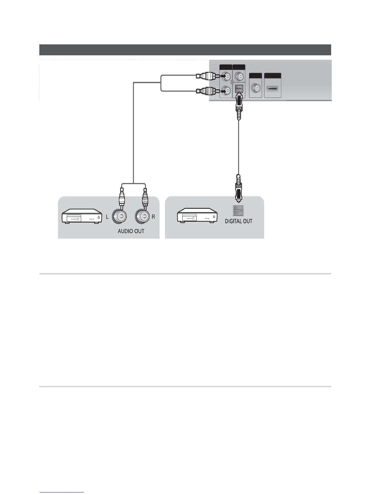 1. Connect the DIGITAL AUDIO IN (OPTICAL) on the back of the product to the Digital Output of the