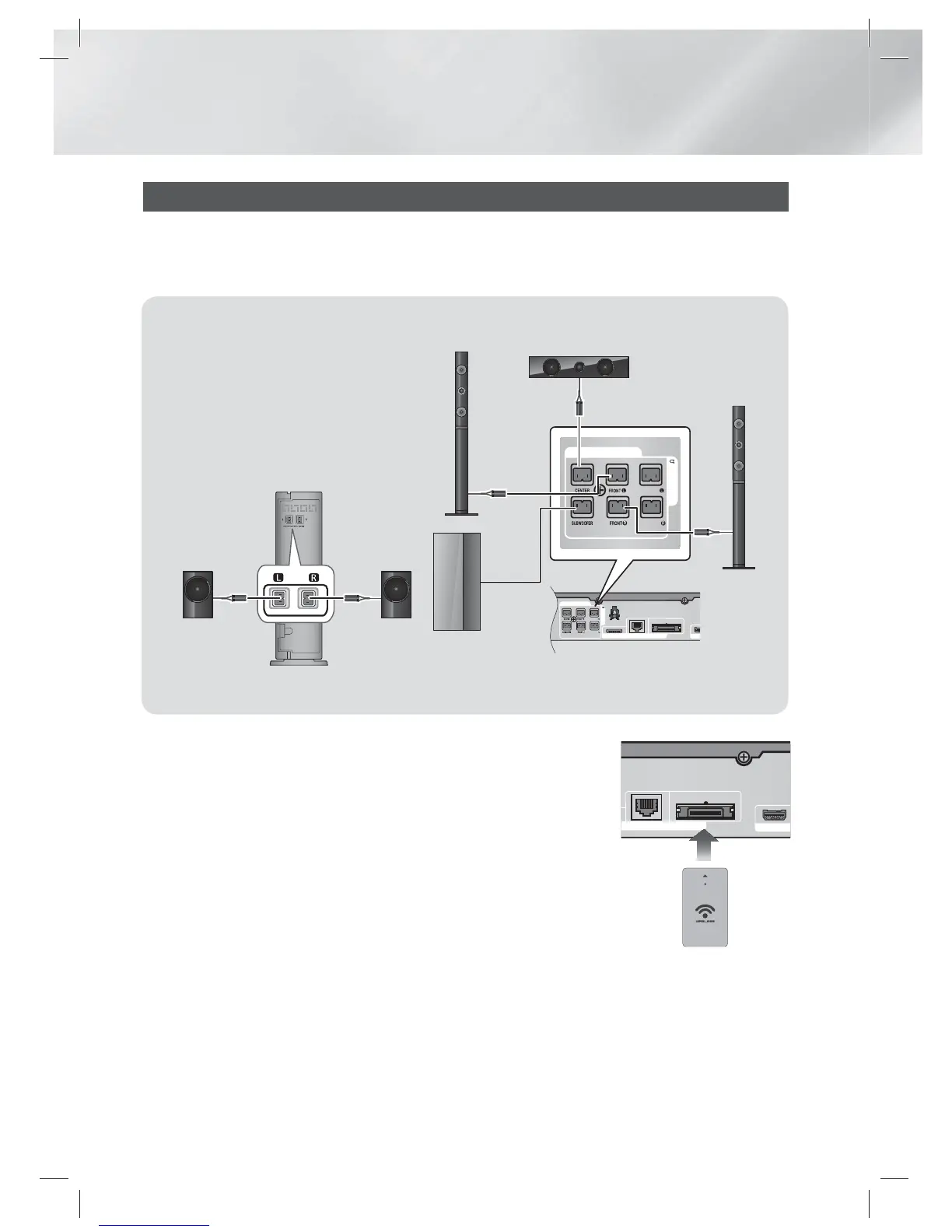 To connect the surround speakers wirelessly, you have to purchase the wireless receiver module and