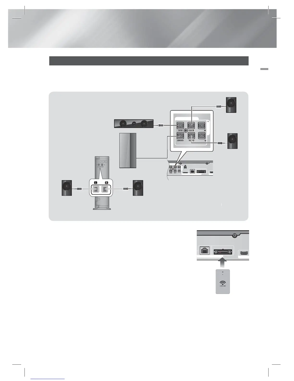 To connect the surround speakers wirelessly, you have to purchase the wireless receiver module and