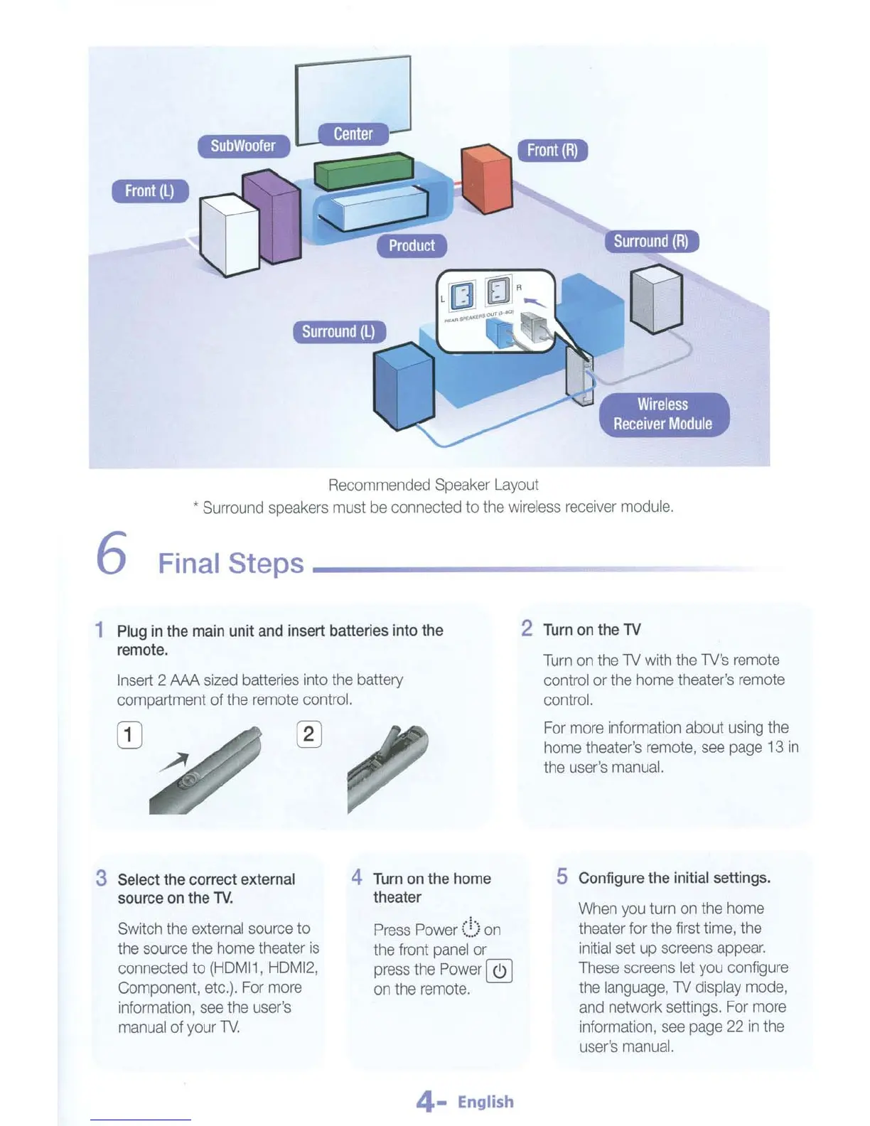 Samsung HT-E5500W - Final Steps; Initial Setup and Configuration