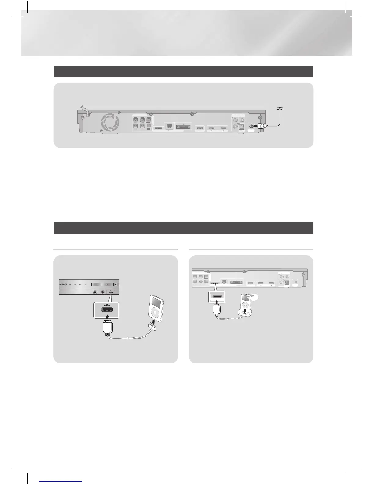 Samsung HT-E5530K - Connecting the FM Antenna; Connecting to an Ipod;Iphone; Using the USB Cable; Using the Dock