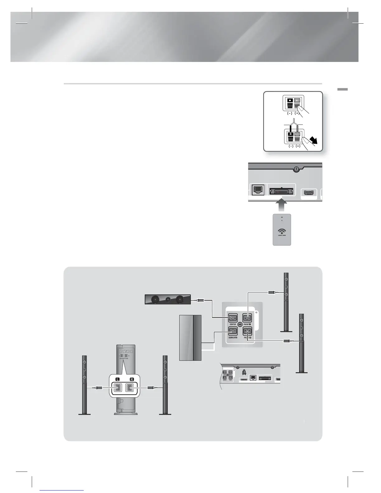 5. Connect the left and right surround speakers to the wireless