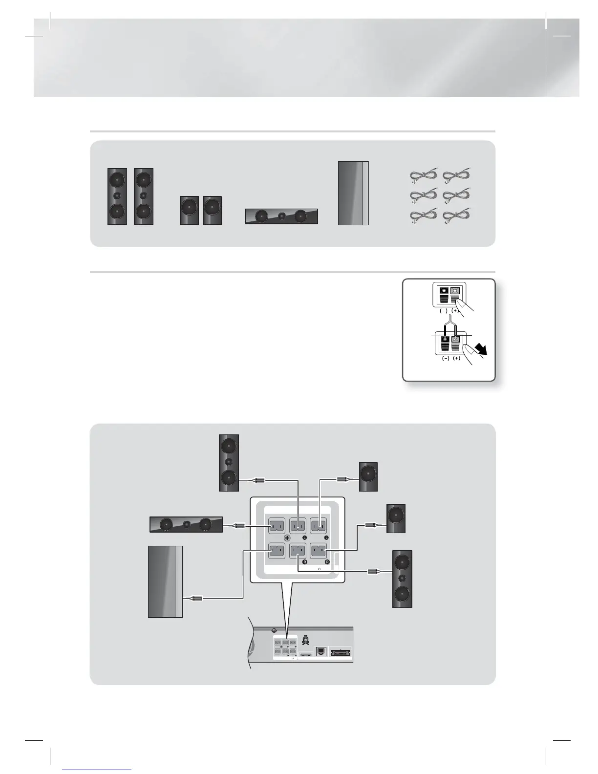 2. Anschließen der Lautsprecherkabel an die Lautsprecher: