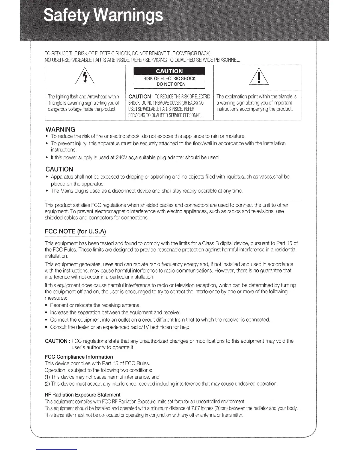 Samsung HT-E6500W - Safety Warnings; CAUTION (RISK OF ELECTRIC SHOCK)