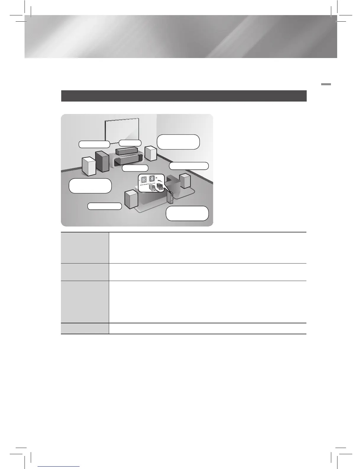 Unlike the front/front top and Center speakers, the surround speakers are used