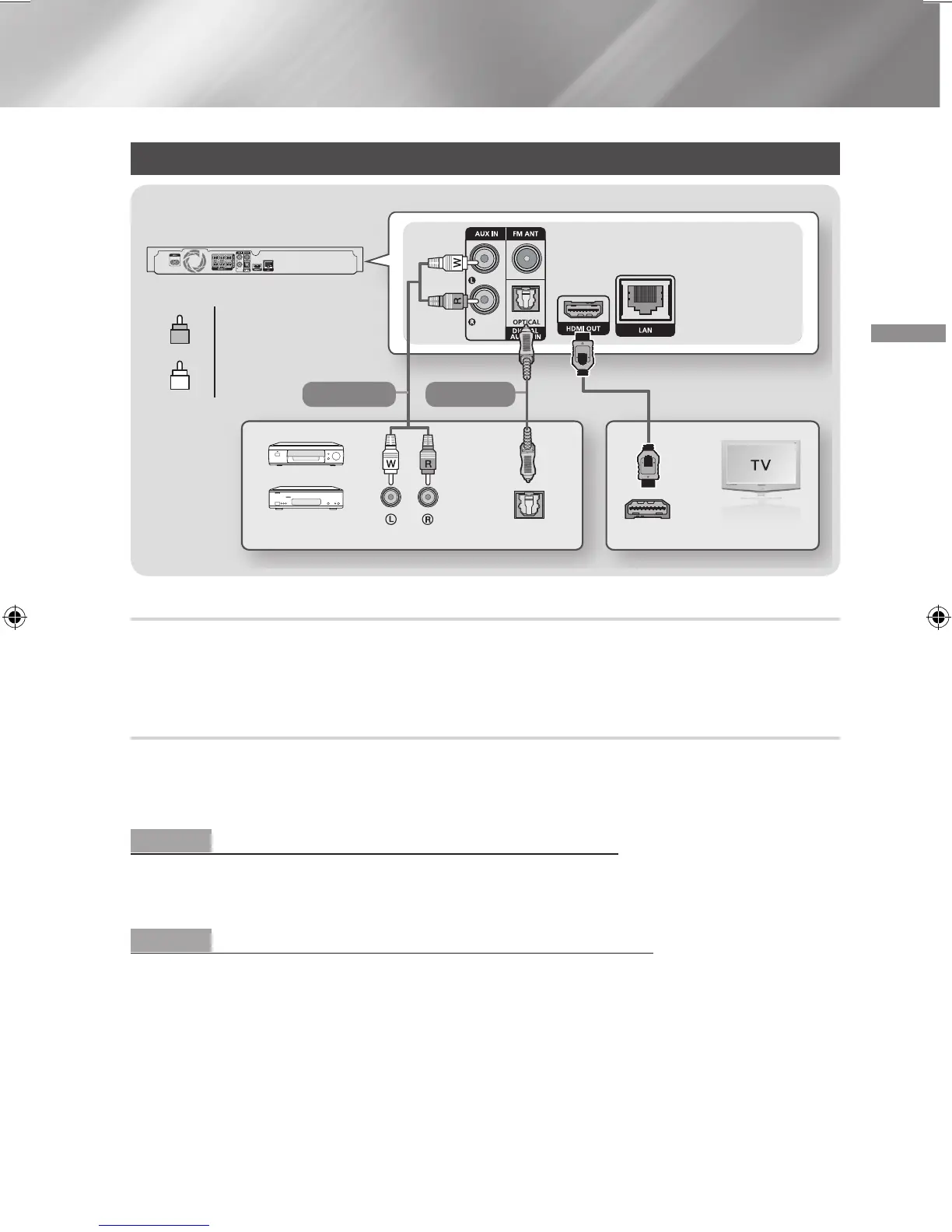 Two methods of connecting external devices to your home cinema are explained below.