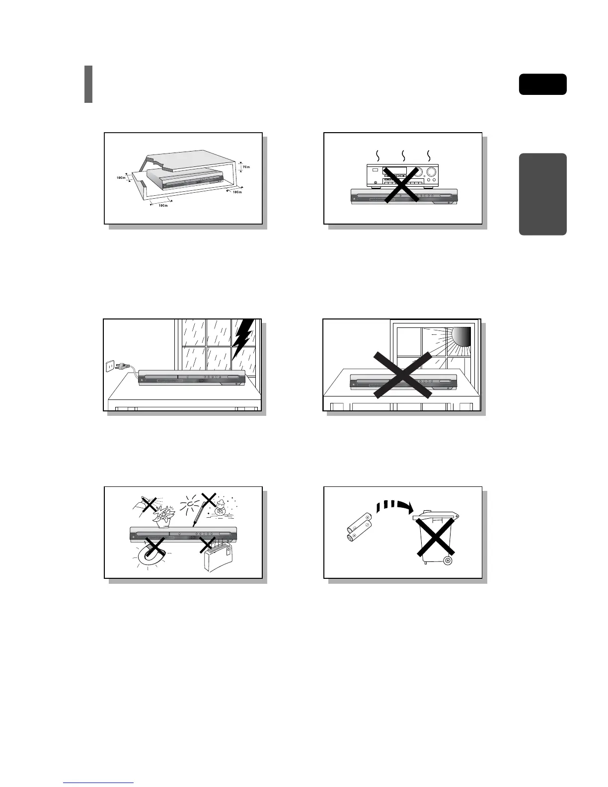 become hot. Before moving the player, ensure the disc tray is empty. This player is designed for continuous use. Switching off the DVD