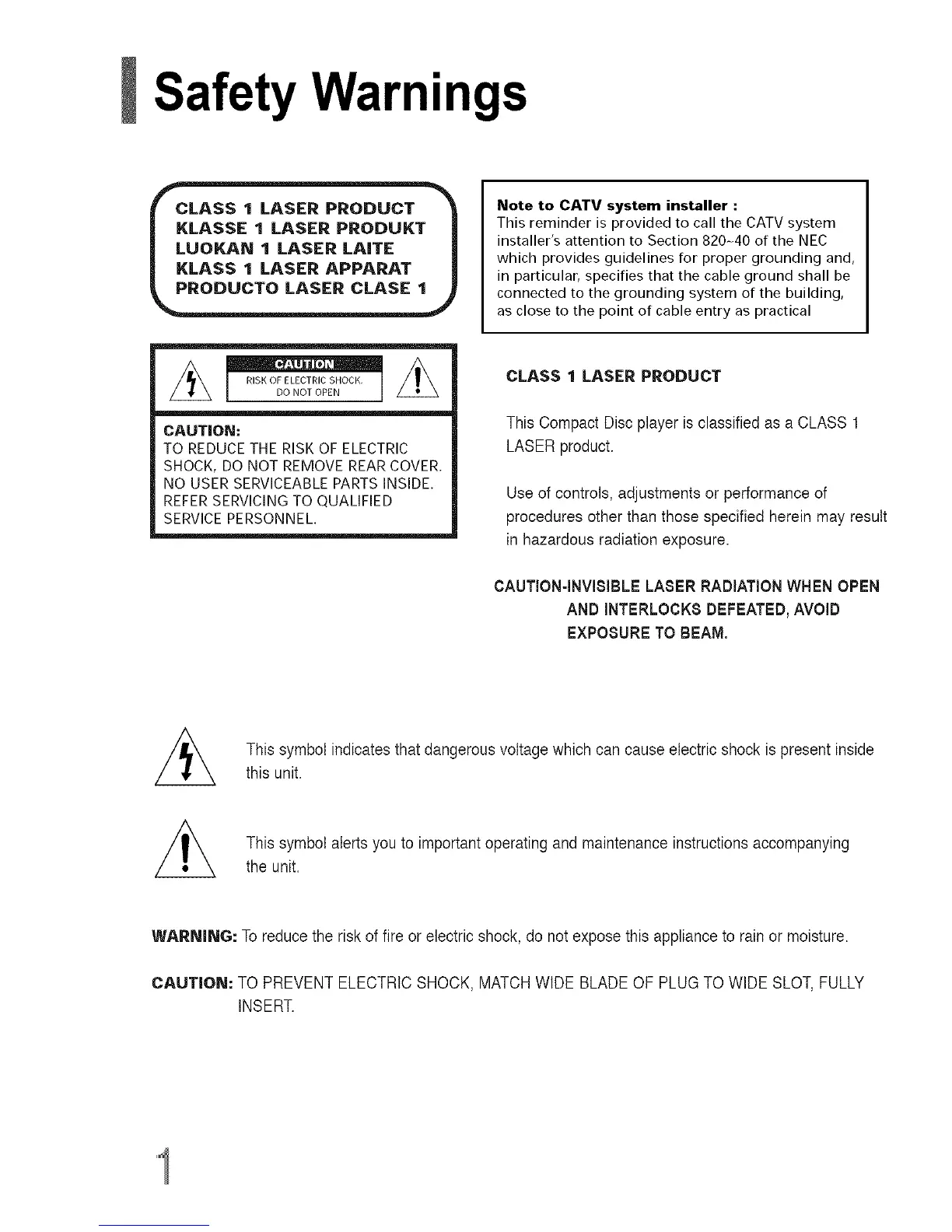 This Compact Disc player isclassified as a CLASS 1