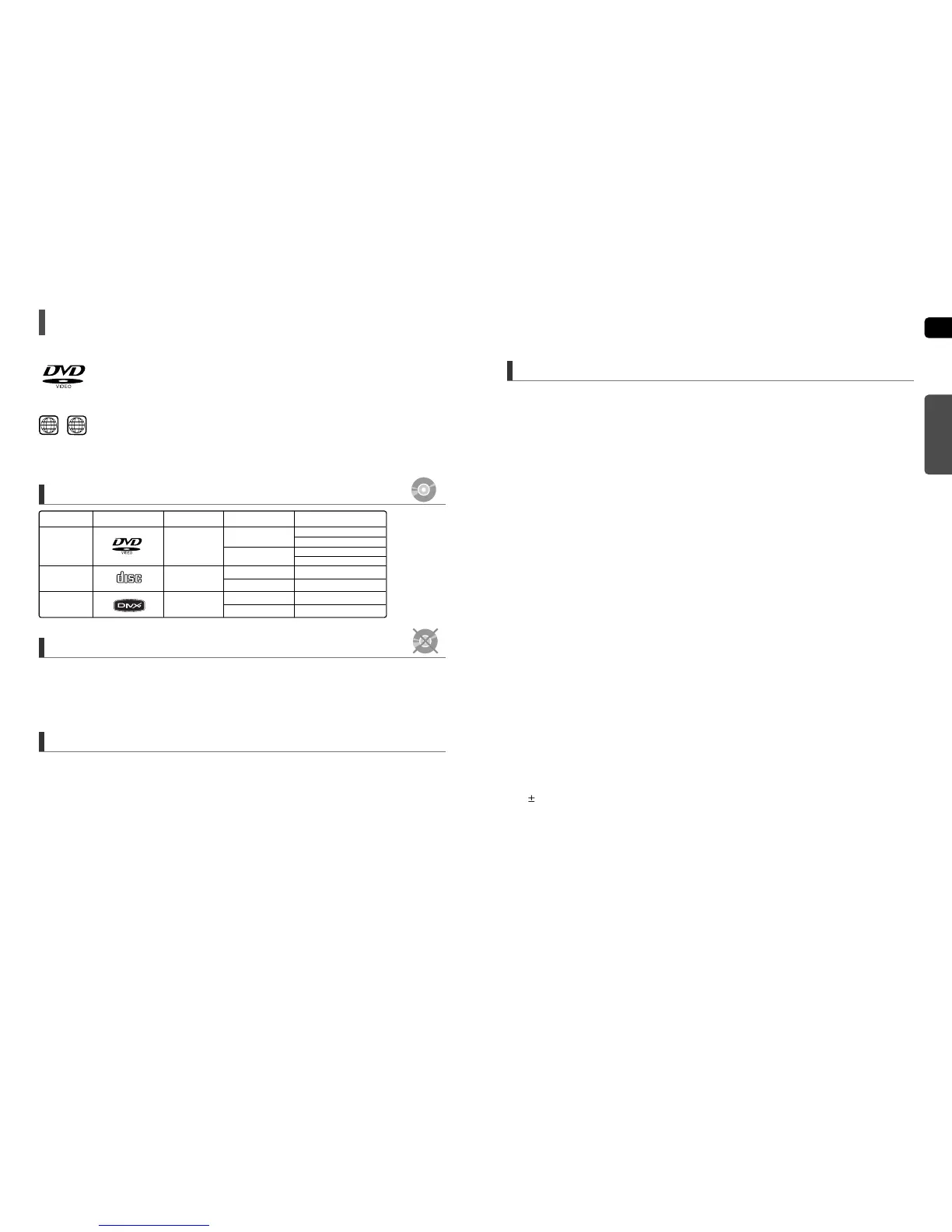LD, CD-G, CD-I, CD-ROM and DVD-ROM discs cannot be played on this player.