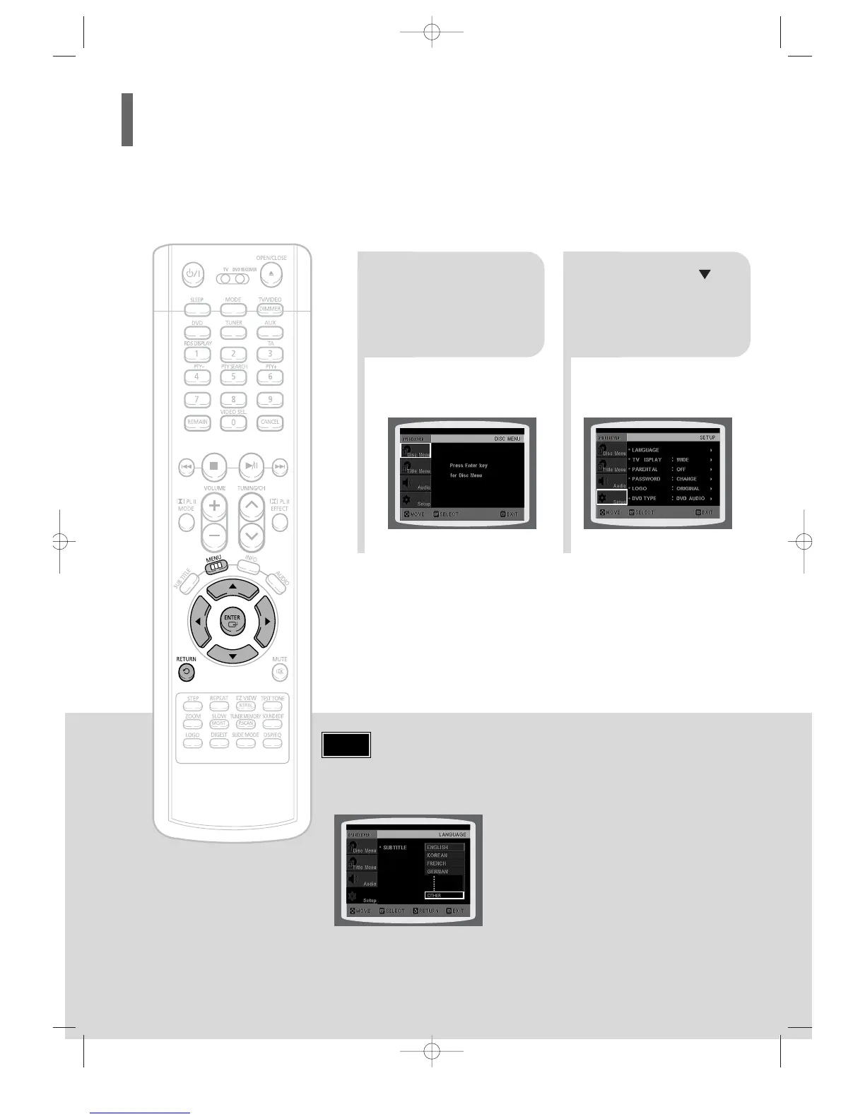AUDIO, SUB TITLE and DISC MENU language can be selected.