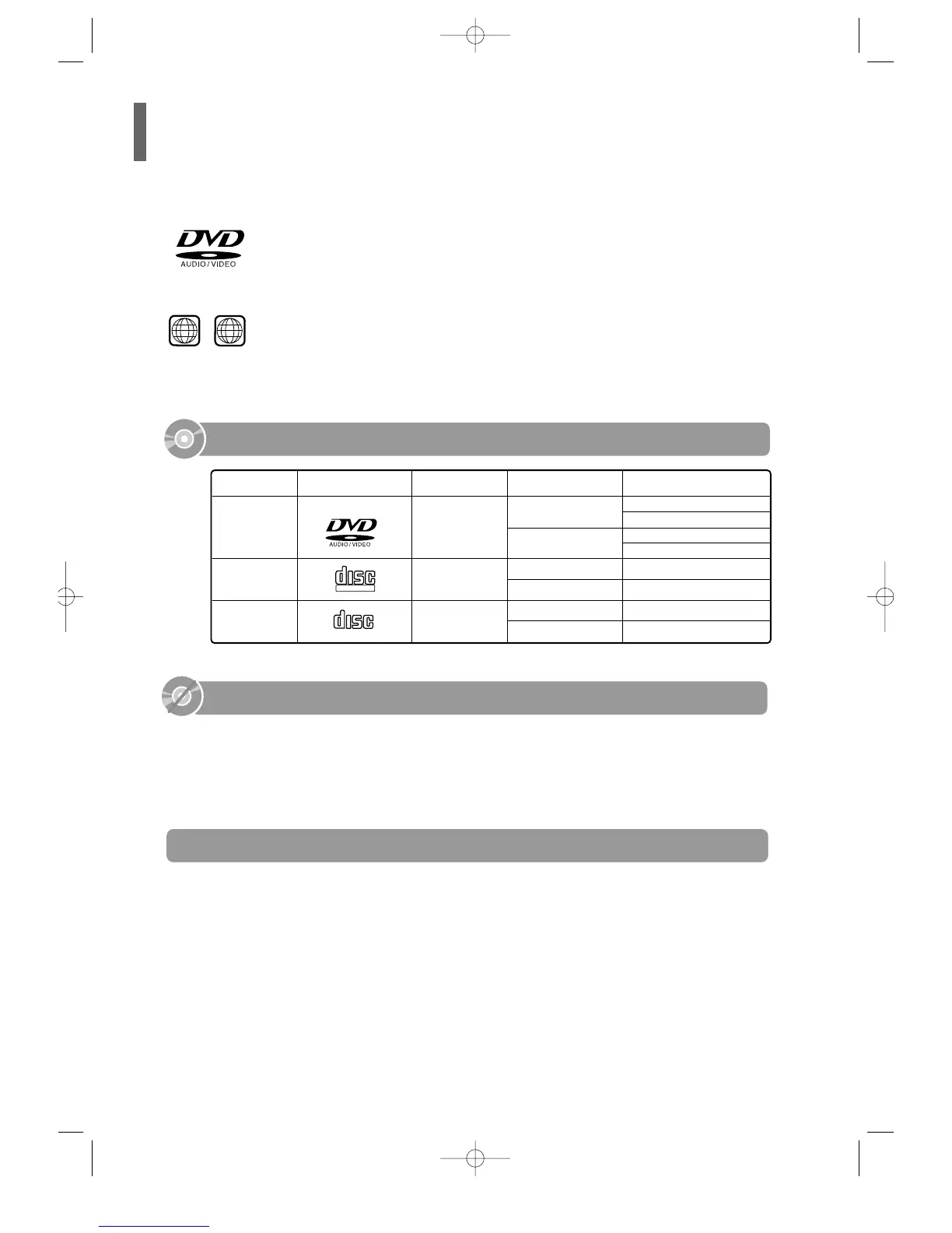 LD, CD-G, CD-I, CD-ROM and DVD-ROM discs cannot be played on this player.