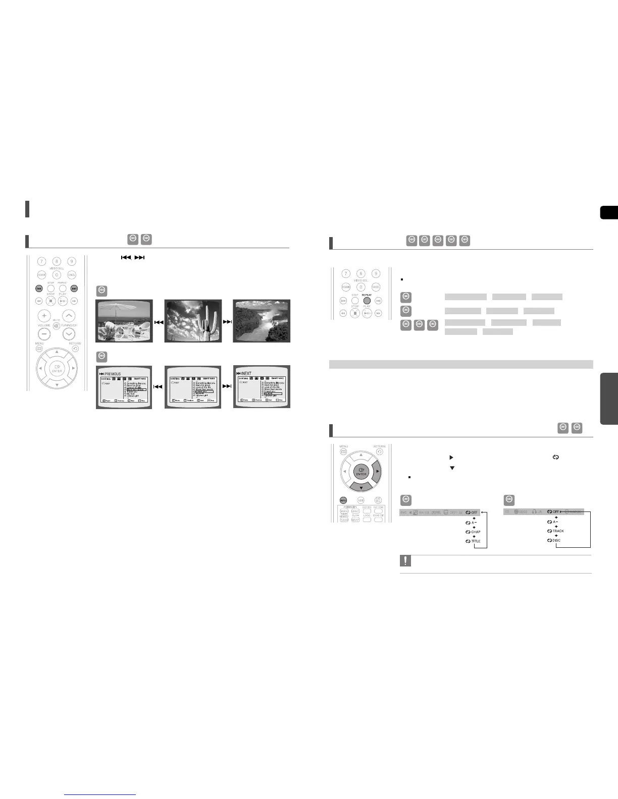 Each time the button is pressed during playback, the previous or next chapter, track or