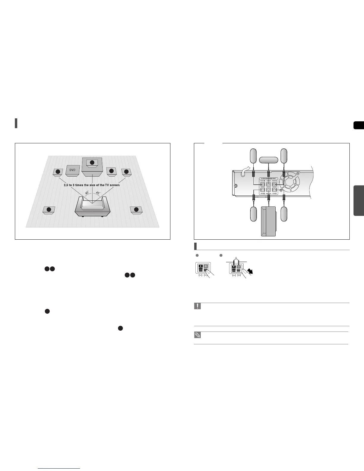 • When connecting the speaker wires to the speakers, make sure that the polarity (+/–) is correct.