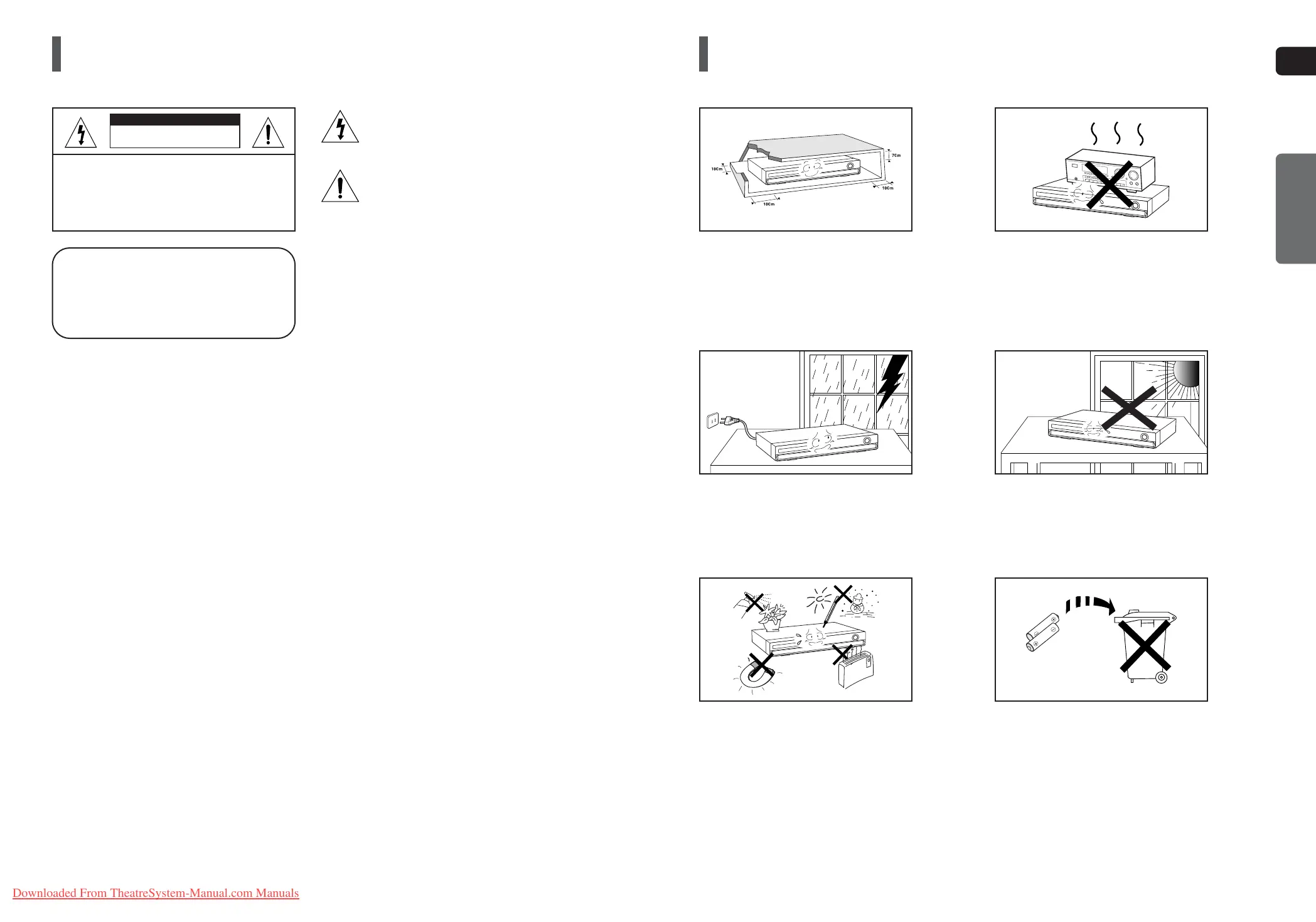 CAUTION : Apparatus shall not be exposed to dripping or splashing and no objects filled with liquids, such as vases, shall