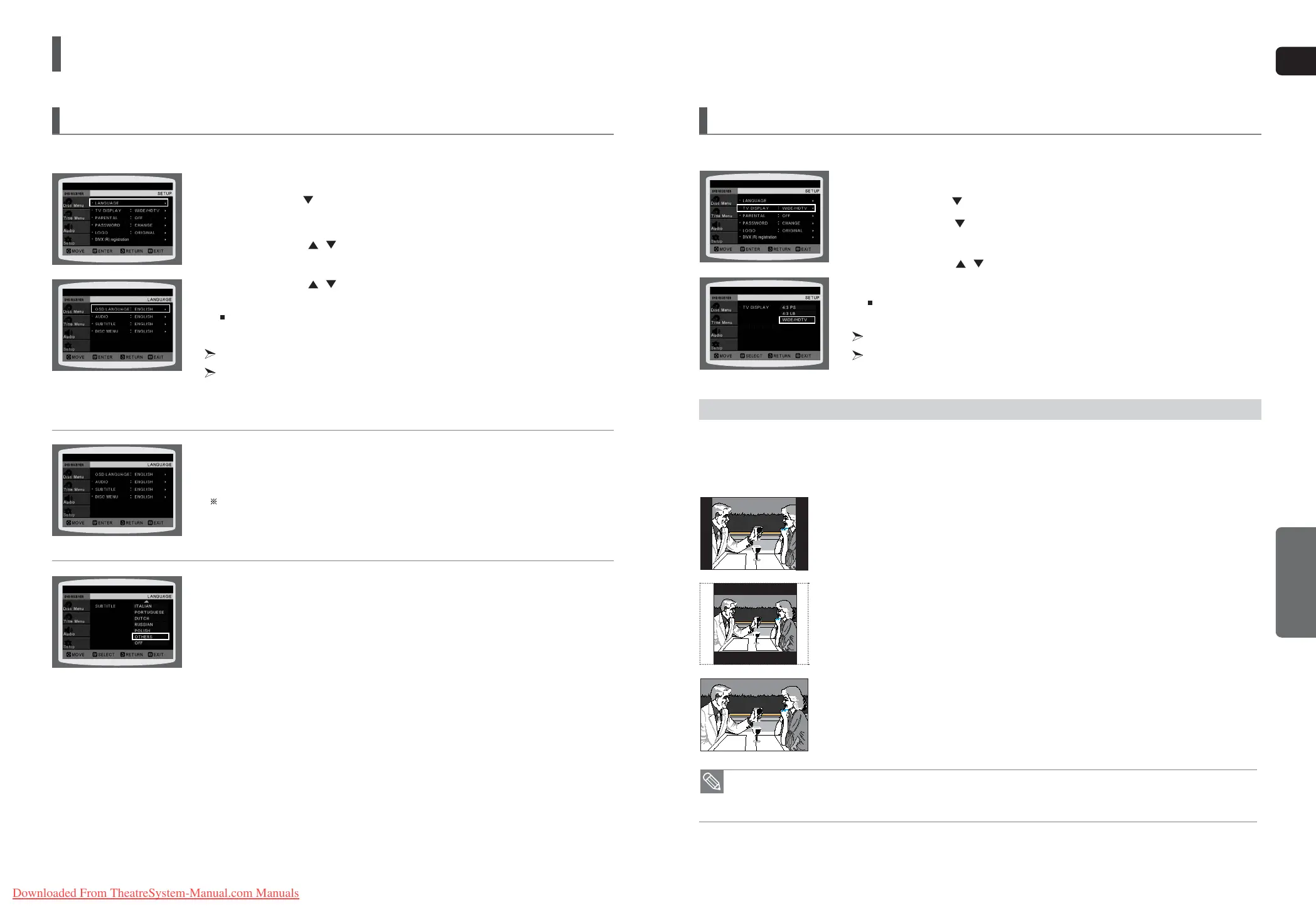 Depending on your TV type (Wide Screen or conventional 4:3), you can select the TV's aspect ratio.