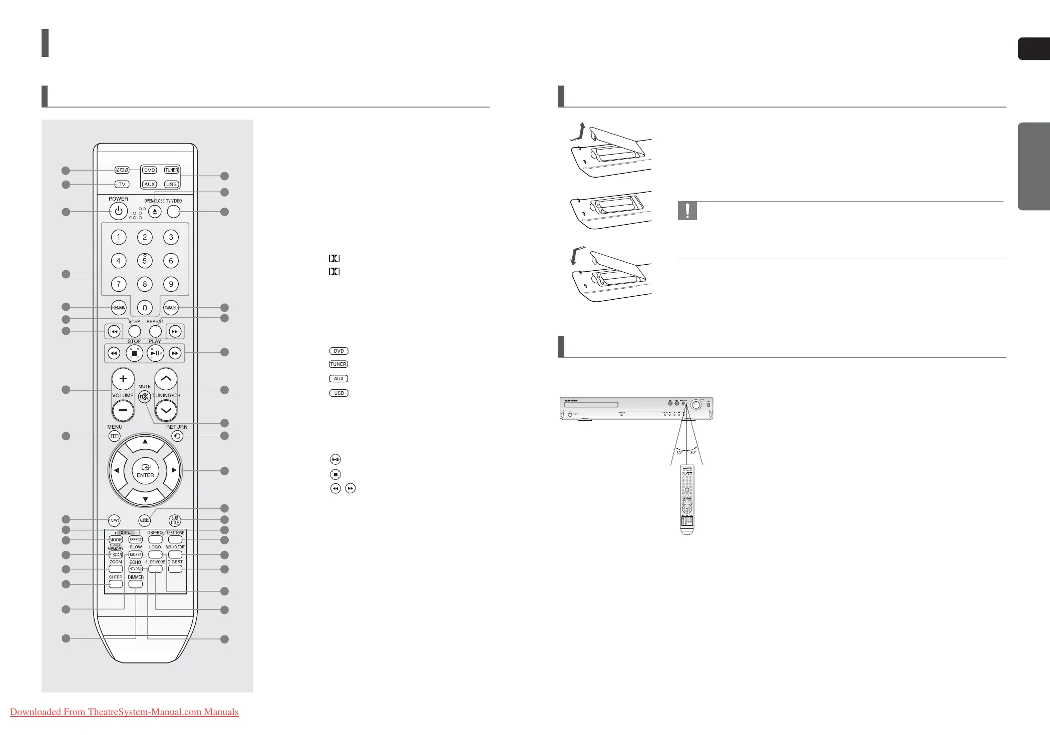 • Place batteries in the remote control so they match the polarity : (+) to (+) and (–) to (–).