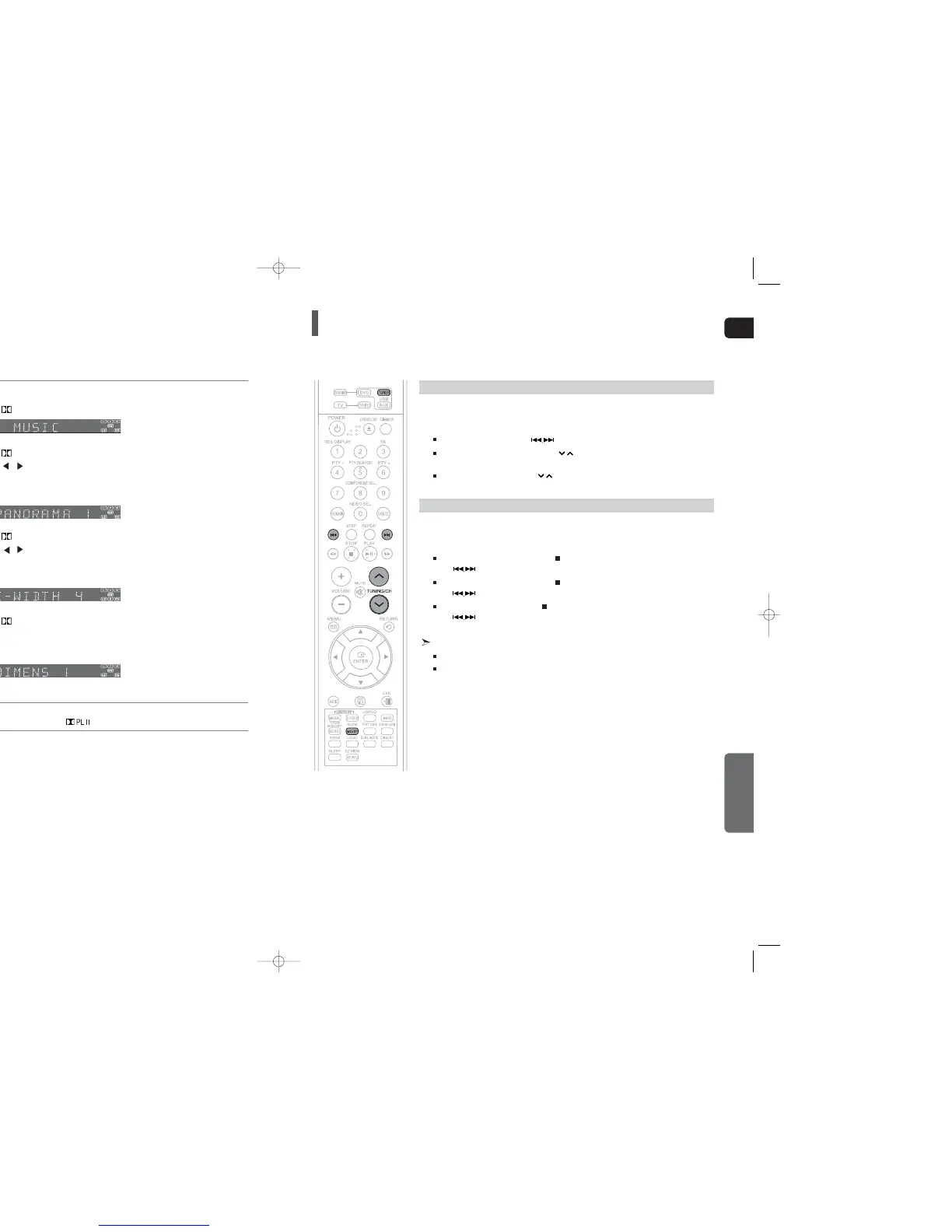 1 Press the PL II MODE button to select <MUSIC> mode.