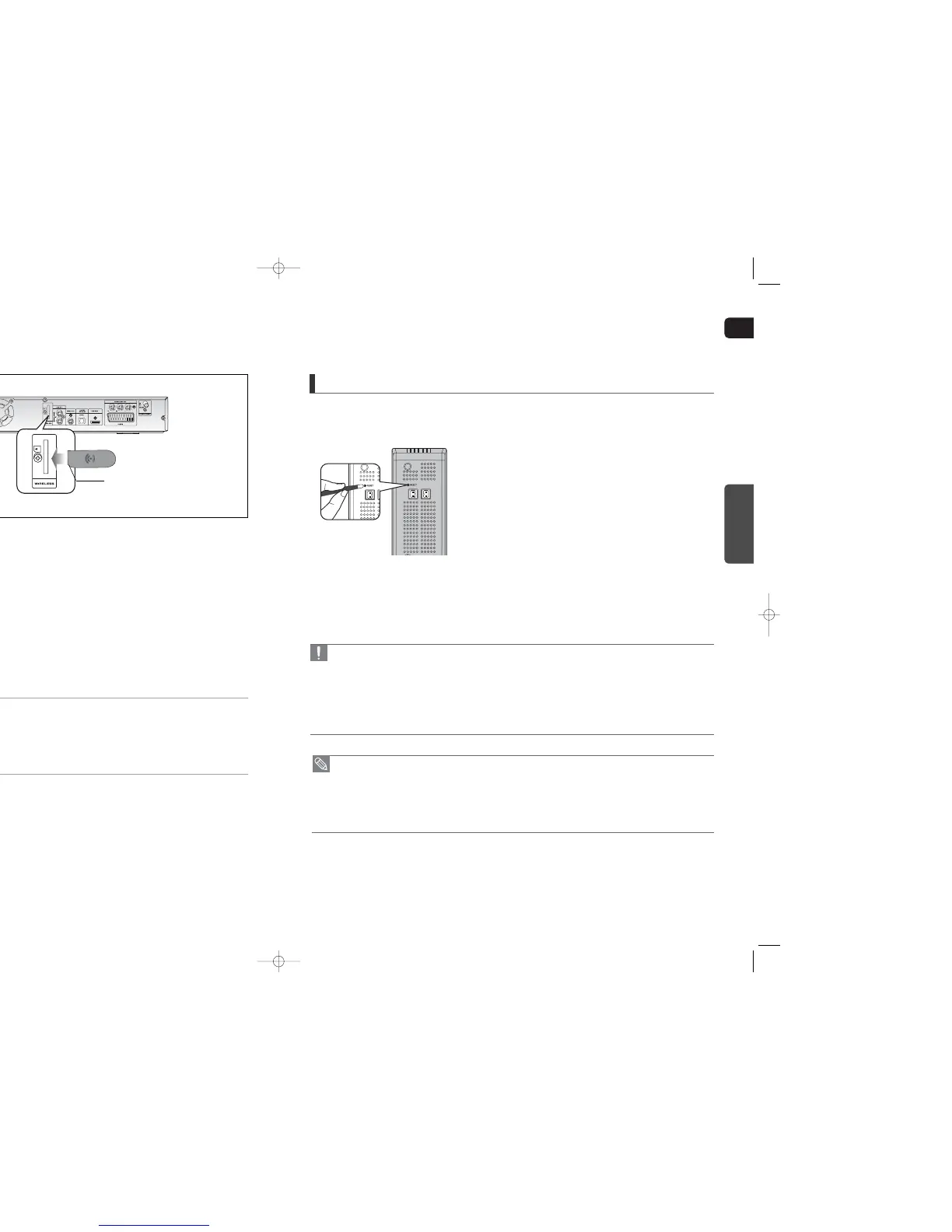 • Sound will be heard from the wireless rear speakers in DVD 5.1-CH or Dolby Pro Logic II mode only.