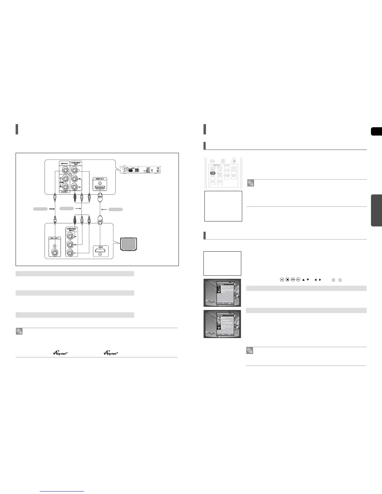 • Anynet+ (HDMI-CEC) will only work while in the DVDmode.