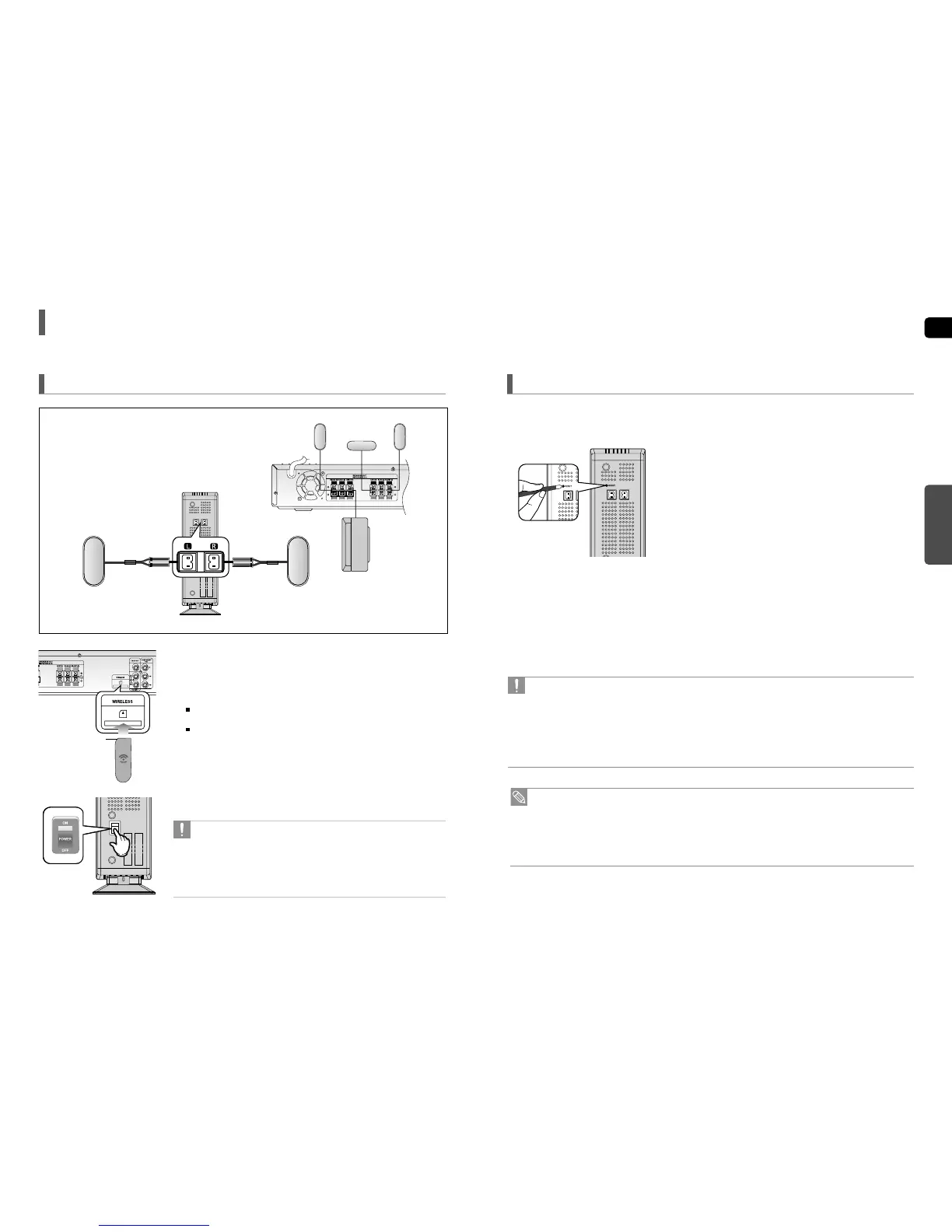 • In 2-CH mode, no sound will be heard from the wireless rear speakers.