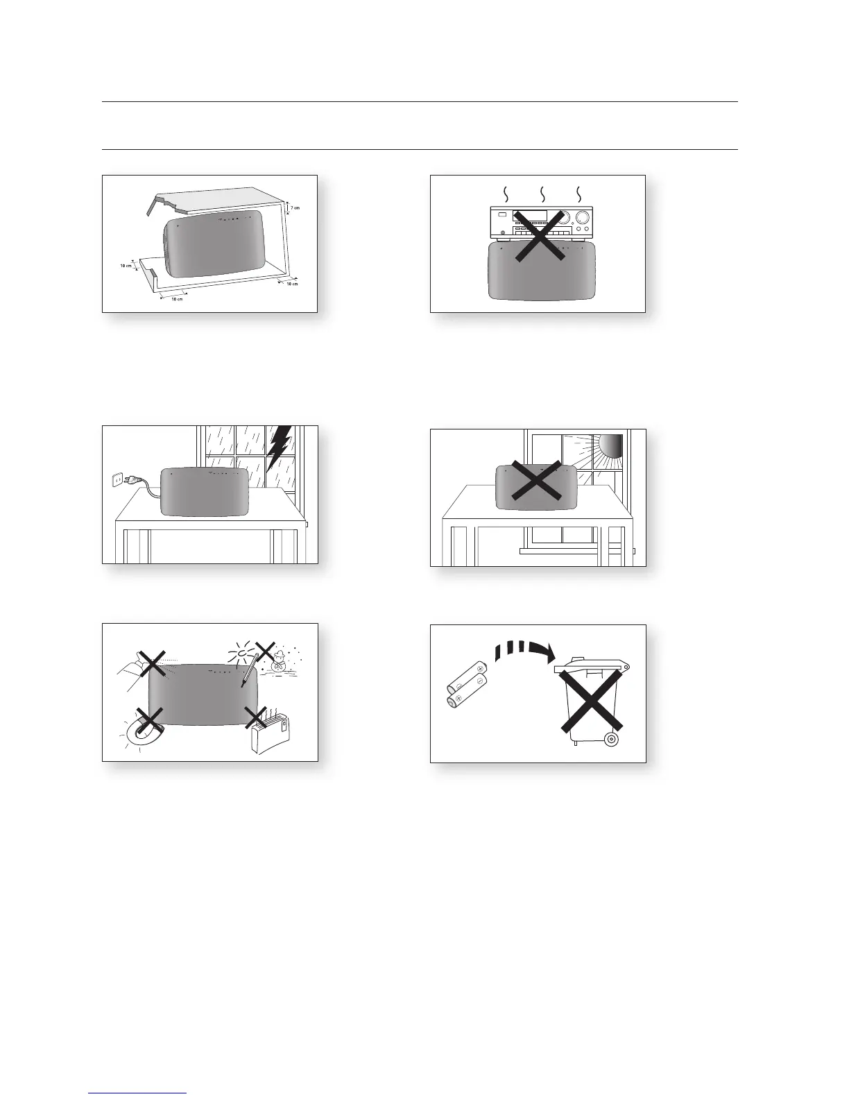 player horizontally, on a suitable base (furniture), with enough space around it for ventilation (7.5~10 cm). Make sure the ventilation slots
