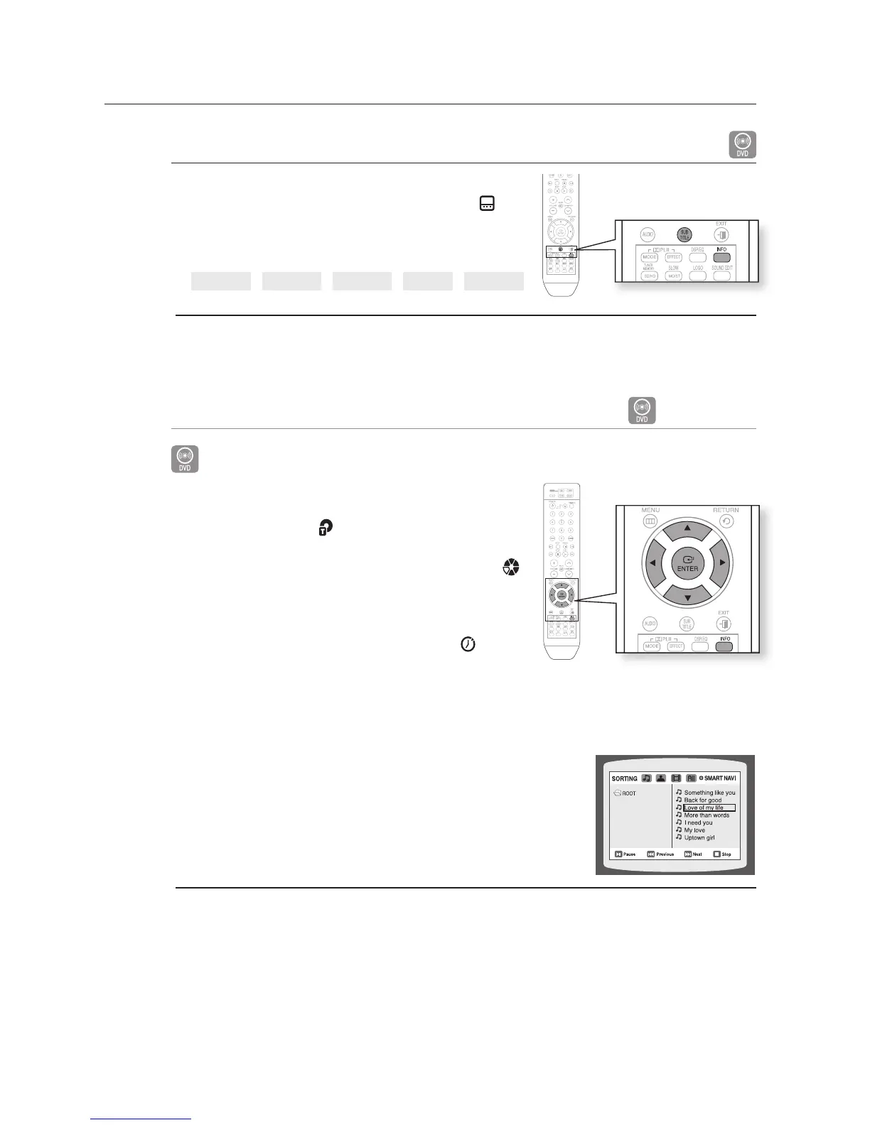 To operate this function, you can also press the SUBTITLE buttons on the remote control.