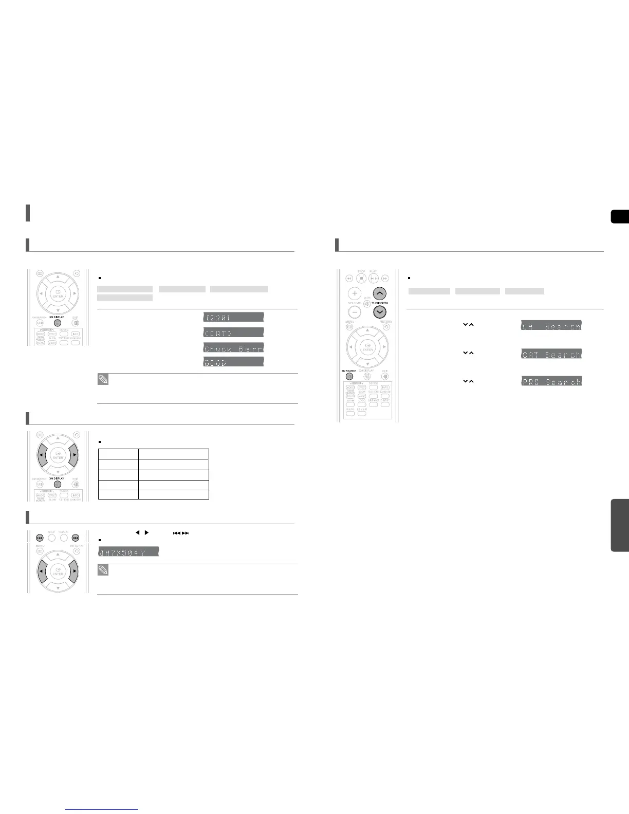 Each time the XM DISPLAY button is pressed, the mode changes as follows: