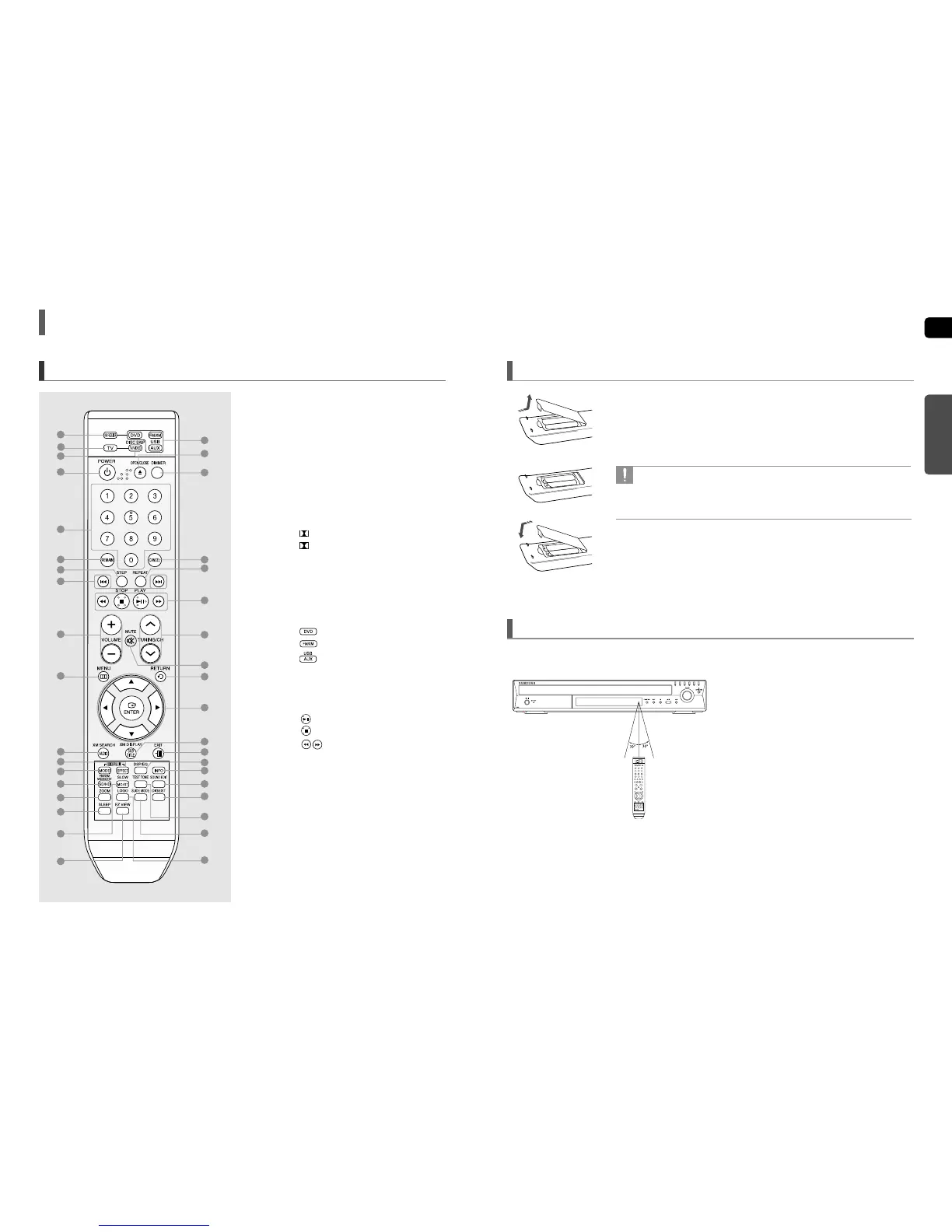 • Place batteries in the remote control so they match the polarity : (+) to (+) and (–) to (–).