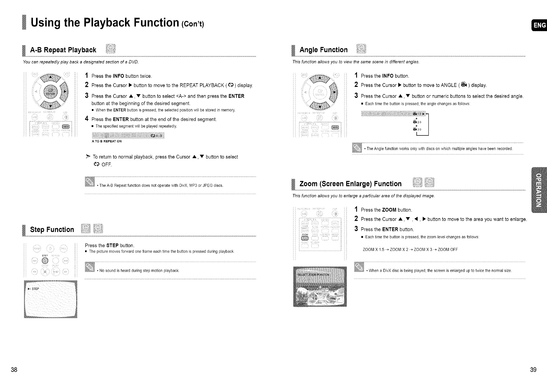 • The A-B Repeat function does not operate with DivX, MP3 or JPEG discs.