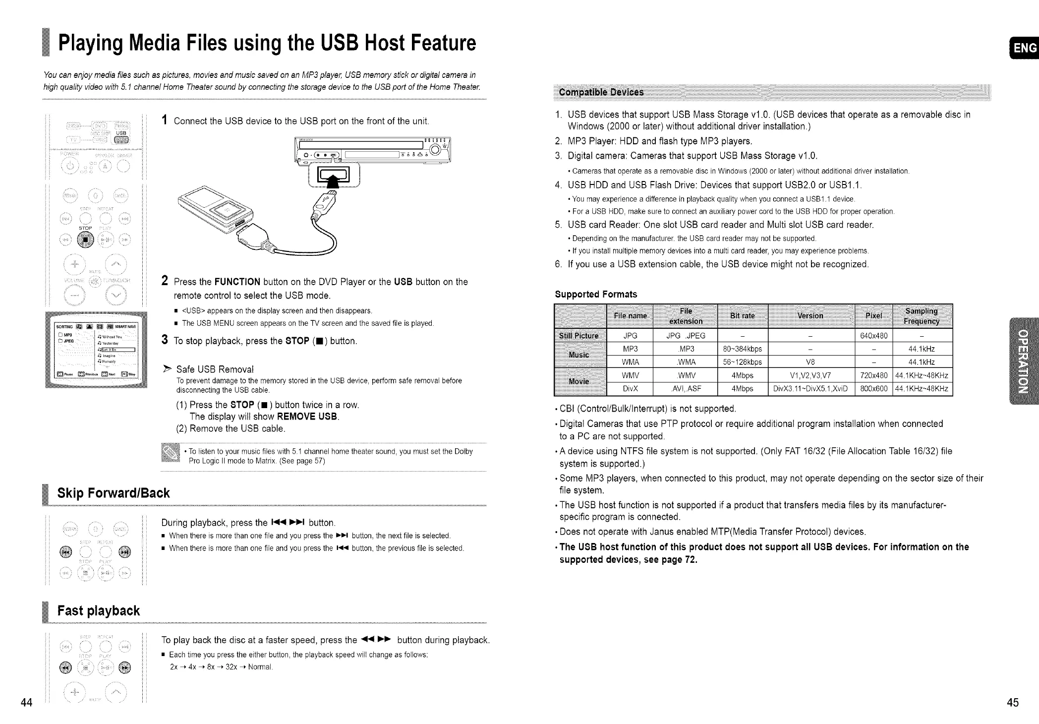 high quality video with 5.1 channel Home Theater sound by connecting the storage device to the USB port of the Home Theate_