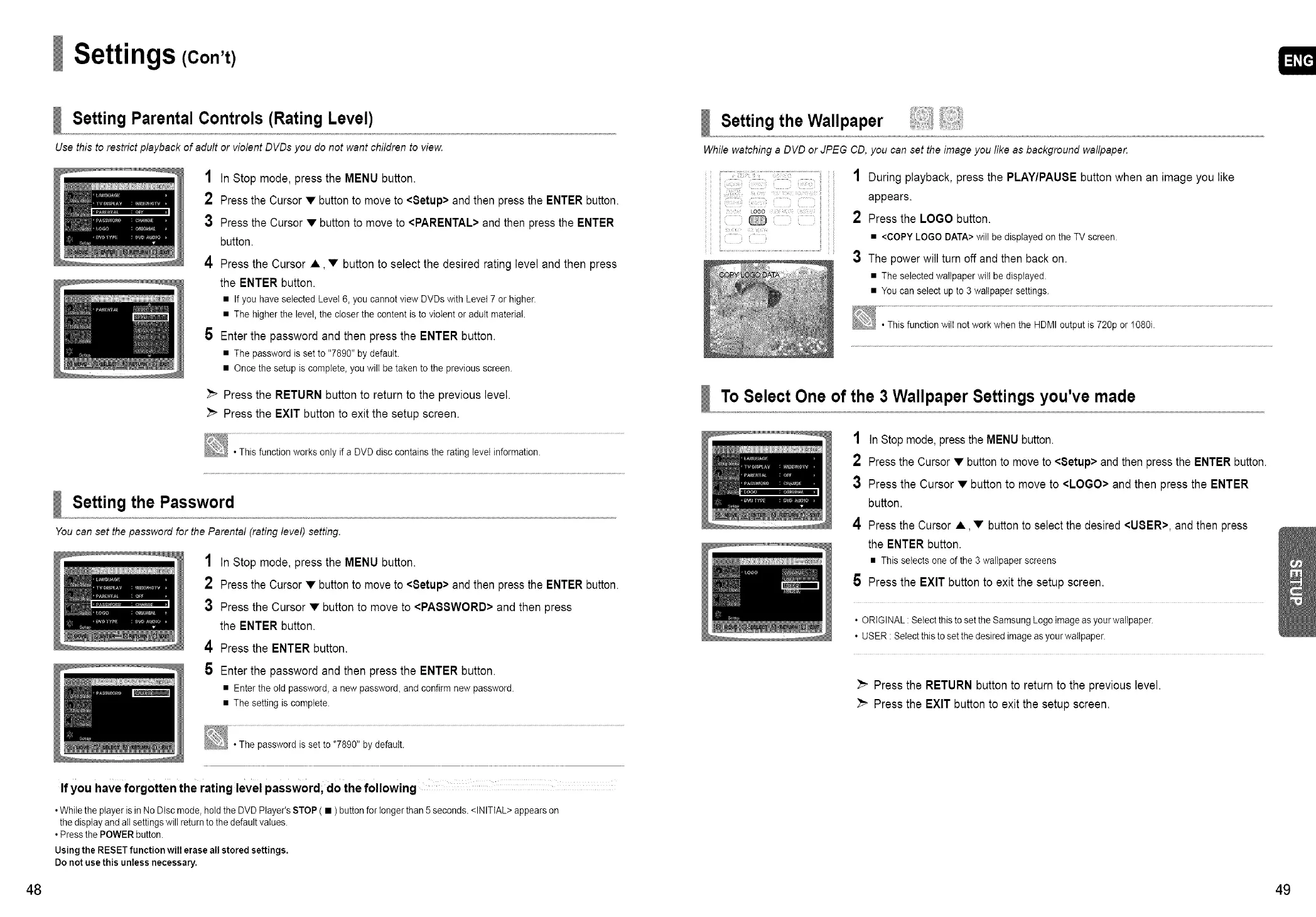 • If youhaveselectedLevel6, youcannotviewDVDswith Levet7 or higher.