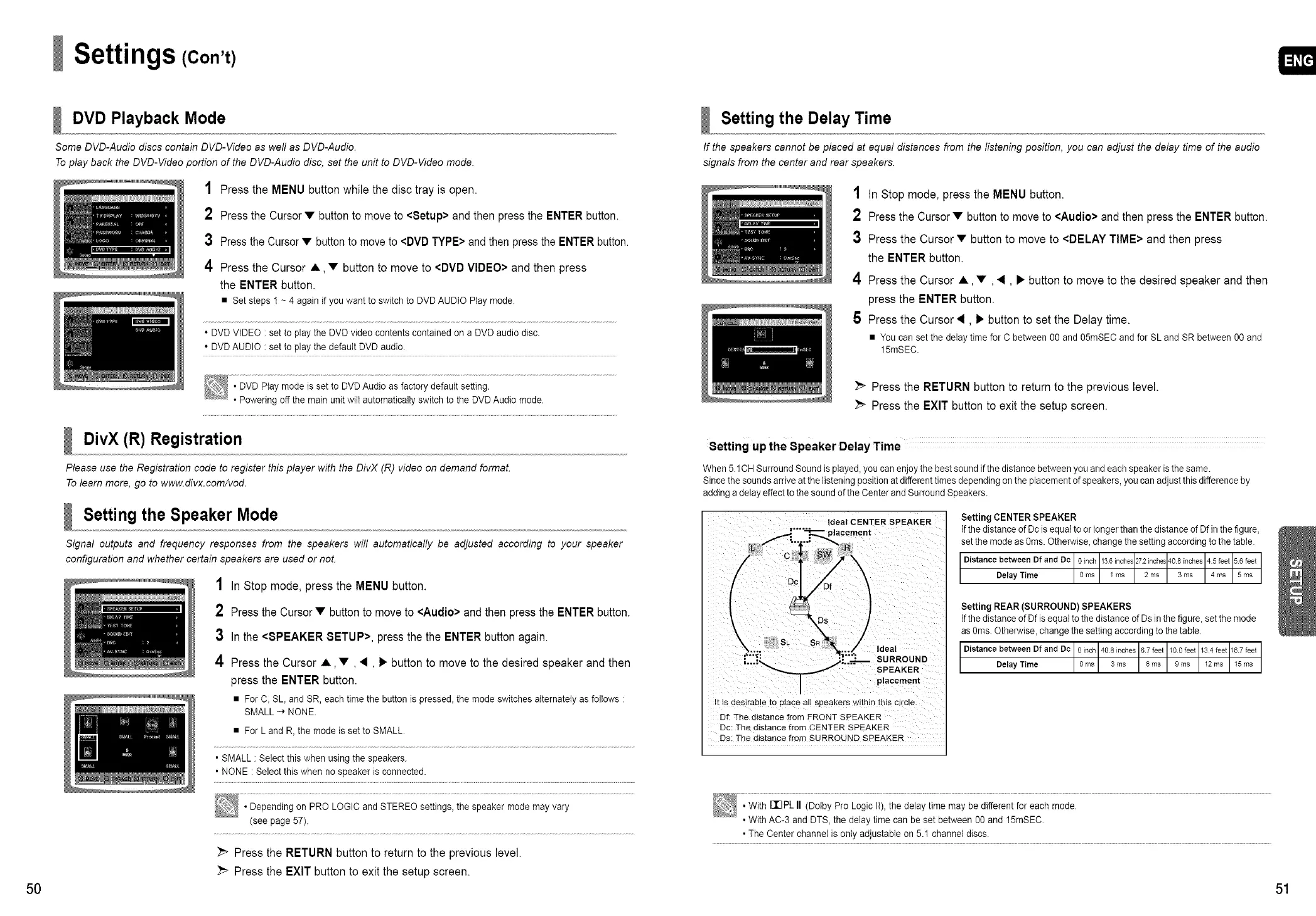 When 5.1CH Surround Sound is playe& you can enjoy the best sound if the distance between you and each speaker isthe same.