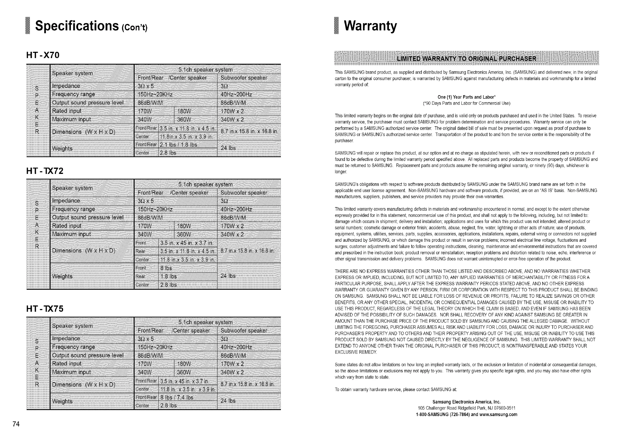 Toobtain warrantyhardware service,please contact SAMSUNG at: