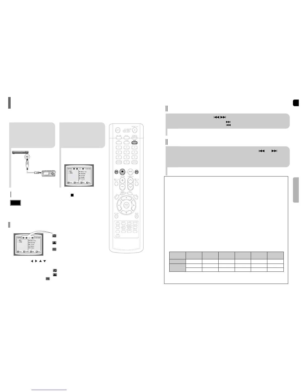 You can connect and play files from external USB storage devices such as MP3 players, USB flash memory, etc.
