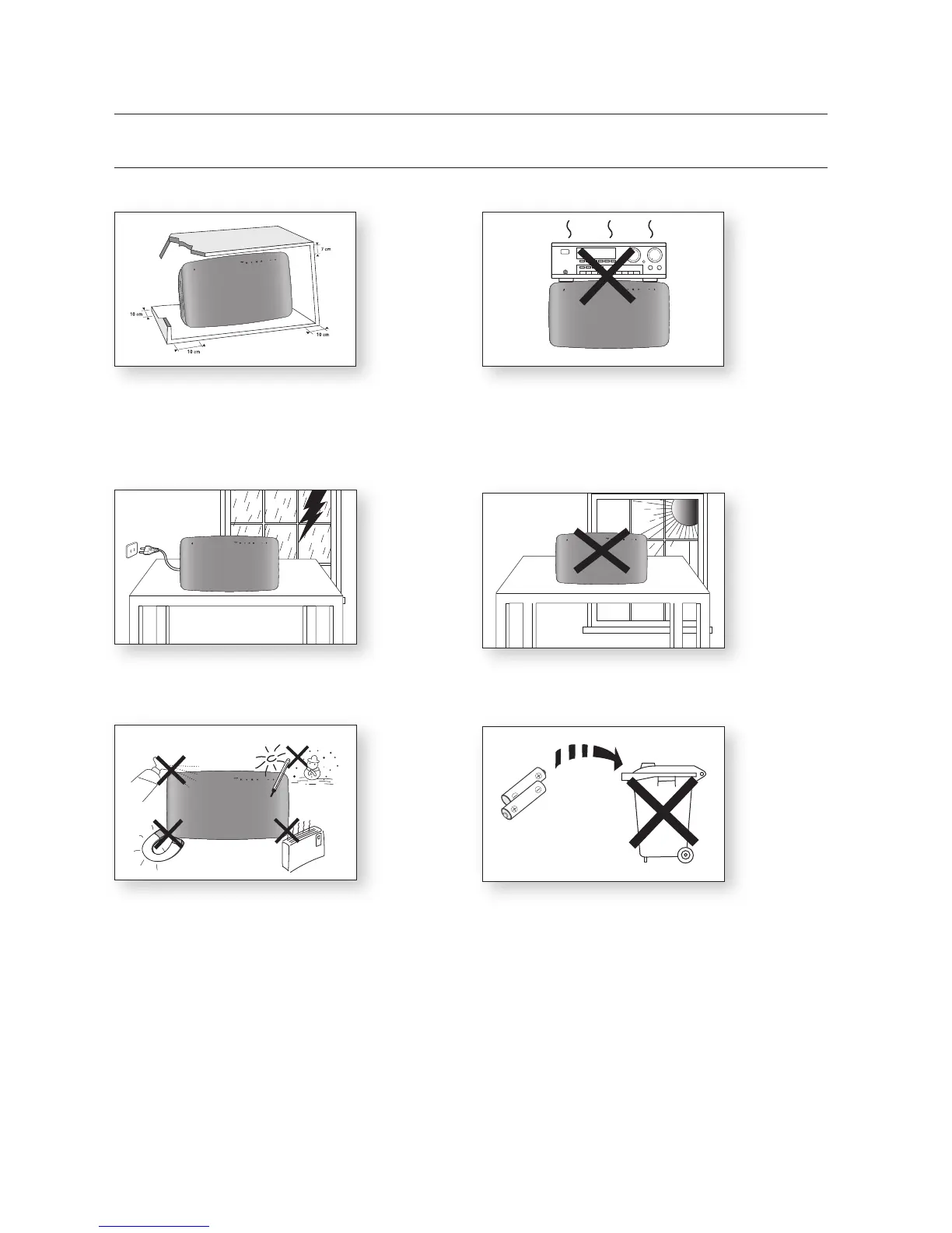 player horizontally, on a suitable base (furniture), with enough space around it for ventilation (7.5~10 cm). Make sure the ventilation slots