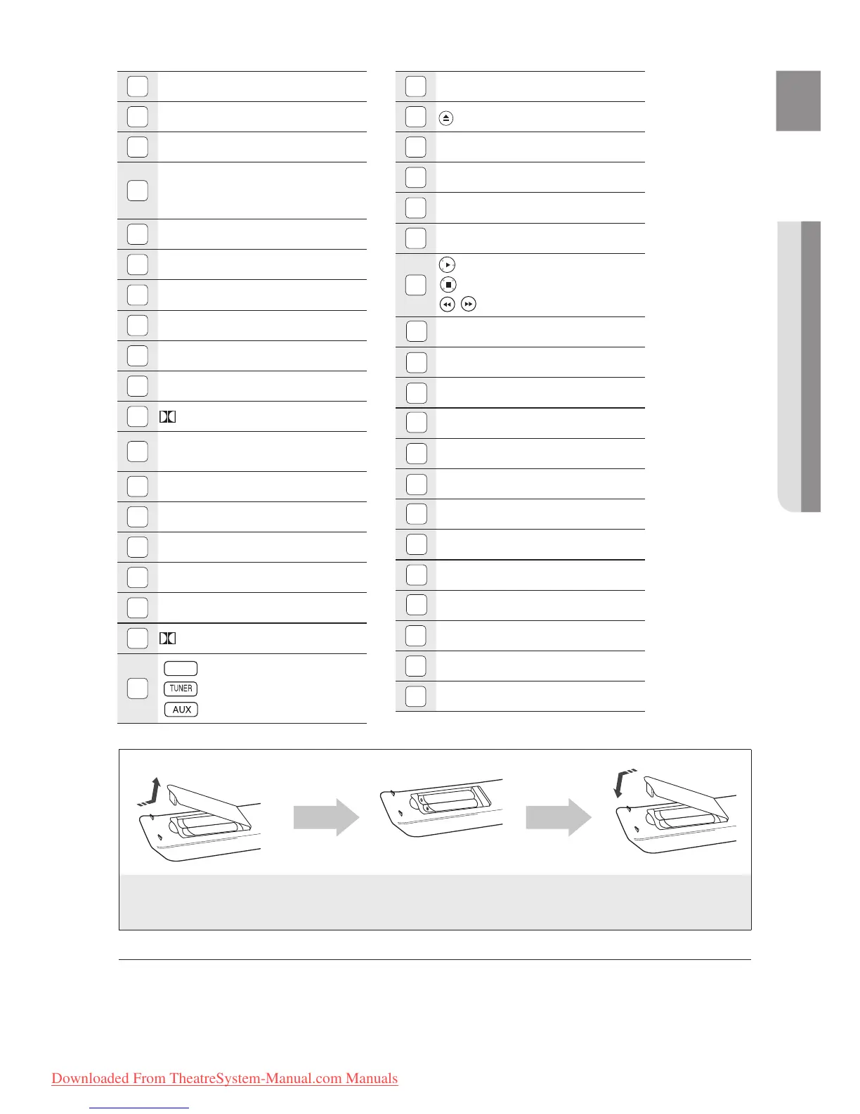 Place batteries in the remote control so they match the polarity : (+) to (+) and (–) to (–).