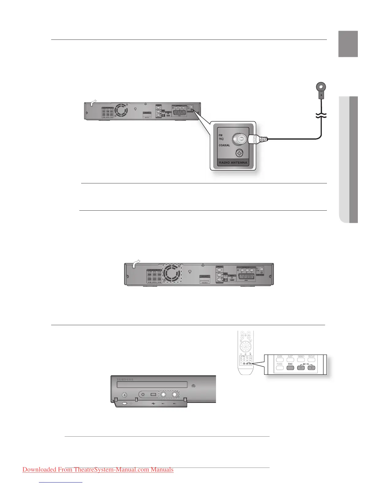 Connect the FM antenna supplied to the FM 75Ω COAXIAL Jack.
